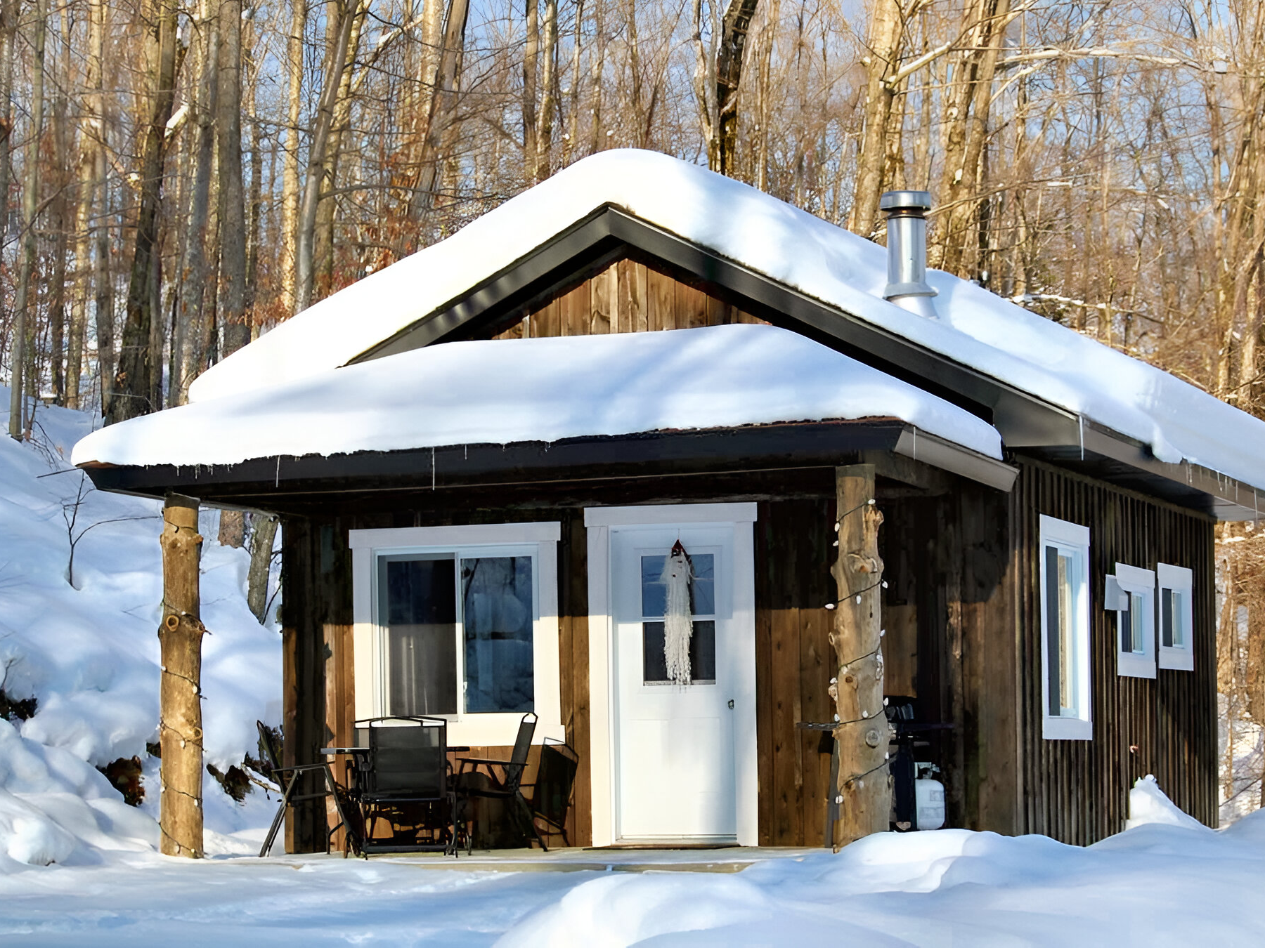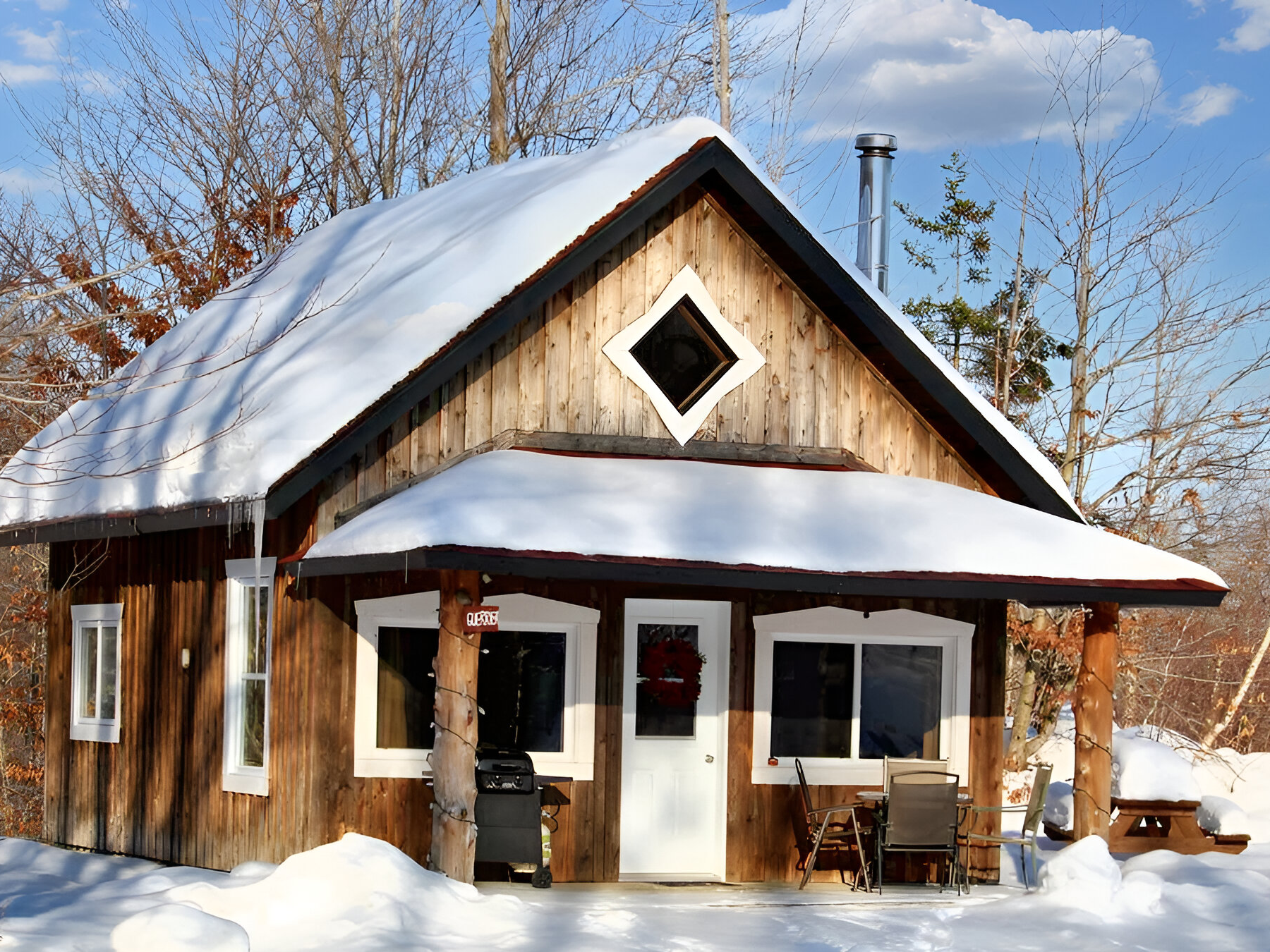 Plongez dans un cadre semi-boisé paisible et enchanteur Situé près du ruisseau du Mont Foster, le Camp Le Soleil Couchant vous offre une expérience de détente absolue, combinant confort rustique et immersion dans la nature. * SPA BOLTON à 4 km. Paradis de la raquette, bois intérieur fourni l'hiver.